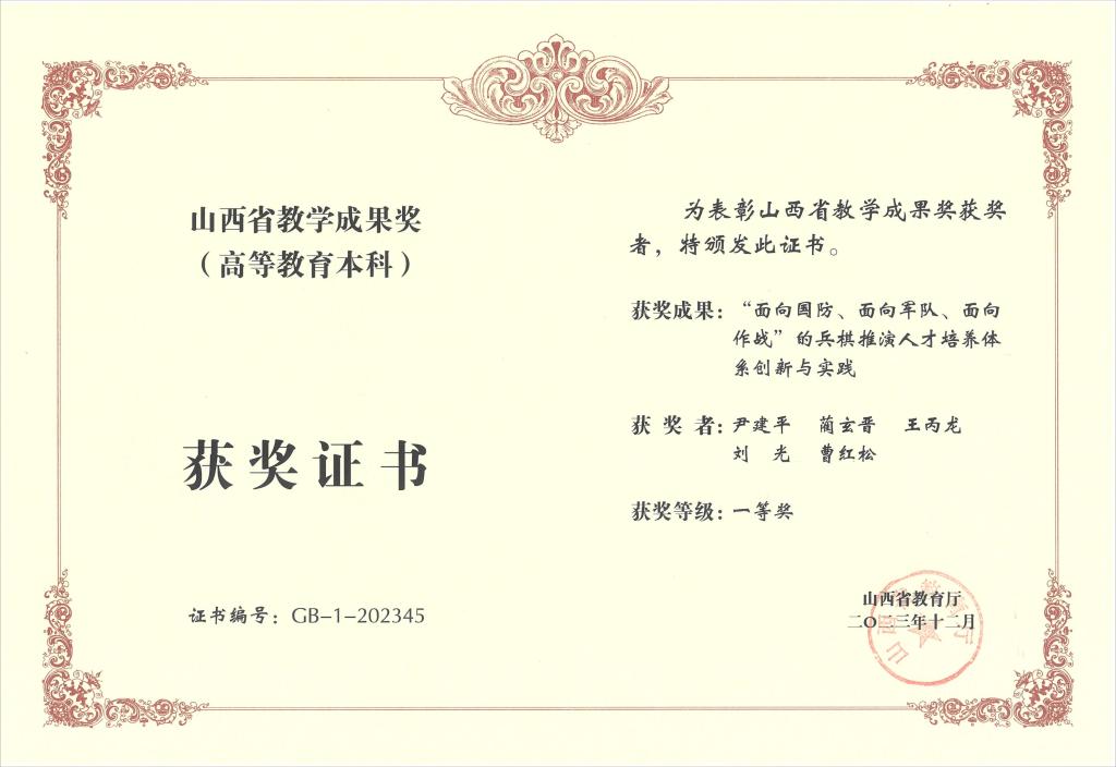聚焦信息化智能化战争时代,建设世界一流军队对高素质兵棋推演人才的迫切需求,前瞻性思考、全局性谋划、战略性布局、整体性推进,通过构建“军事基础知识+现代作战指挥+智能博弈理论+战斗精神培育”“四维支撑”的兵棋推演人才课程培养体系、“第二课堂实践+军工科研院所实践+战地军营参观实践+开源情报研判实践”“四域协同”的兵棋推演人才实践培养体系和“组织保障+学分认定+想定设计+竞赛实战”“四位一体”的兵棋推演人才实战化竞赛培养体系,系统培养“知识体系完备、能力素质过硬、实战意识牢固”的复合型兵棋推演人才。先后建成了由《兵棋推演概论》等12门课程组成的兵推素质培养课程群,勇夺全国兵棋推演大赛“六连冠”;为海军“辽宁”舰、装甲兵技术研究所、炮兵防空兵研究所、军事科学院、航天三院等单位培养近百名作战科研急需的兵棋推演人才,成为我军“兵棋推演人才培养”的摇篮,填补了地方高校培养兵棋推演人才的空白。