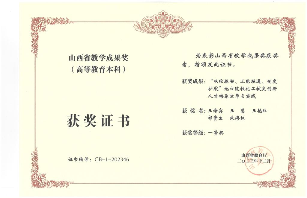 成果以“新的工科专业”和“工科的新要求”为着力点,依托化学工程与工艺国家一流专业优势,以“强设计、擅研究、能创新”化工拔尖创新人才为培养目标,以培养学生设计思维、研究思维和创新思维为突破口,以“思维训练”和“动手实践”为核心驱动(双轮驱动),构建“设计能力”、“研究能力”、“创新能力”并举的人才培养体系(三能融通)。从人才培养方案、师资队伍建设、机制体制等方面进行了系统性改革(制度护航)。构建了以能力导向为牵引,多师同建、多师同堂协同教学新模式,筑建了地方工科院校创新能力培养新机制,形成了“双轮驱动、三能融通、制度护航”地方院校化工拔尖创新人才培养理念。成果对地方院校培养化工拔尖创新人才具有重要的参考意义和价值。